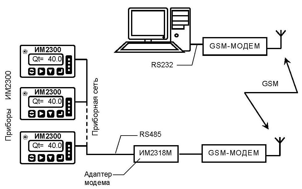 Адаптер модема ИM2318М предназначен для обеспечения связи между компьютером и теплоэнергоконтроллерами ИM2300 через сотовую сеть.
