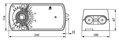 - Наличие возвратной пружины у привода позволяет выполнять защитные функции и обеспечивает, например, защиту от замерзания теплообменников и полное гарантированное закрытие заслонки.
